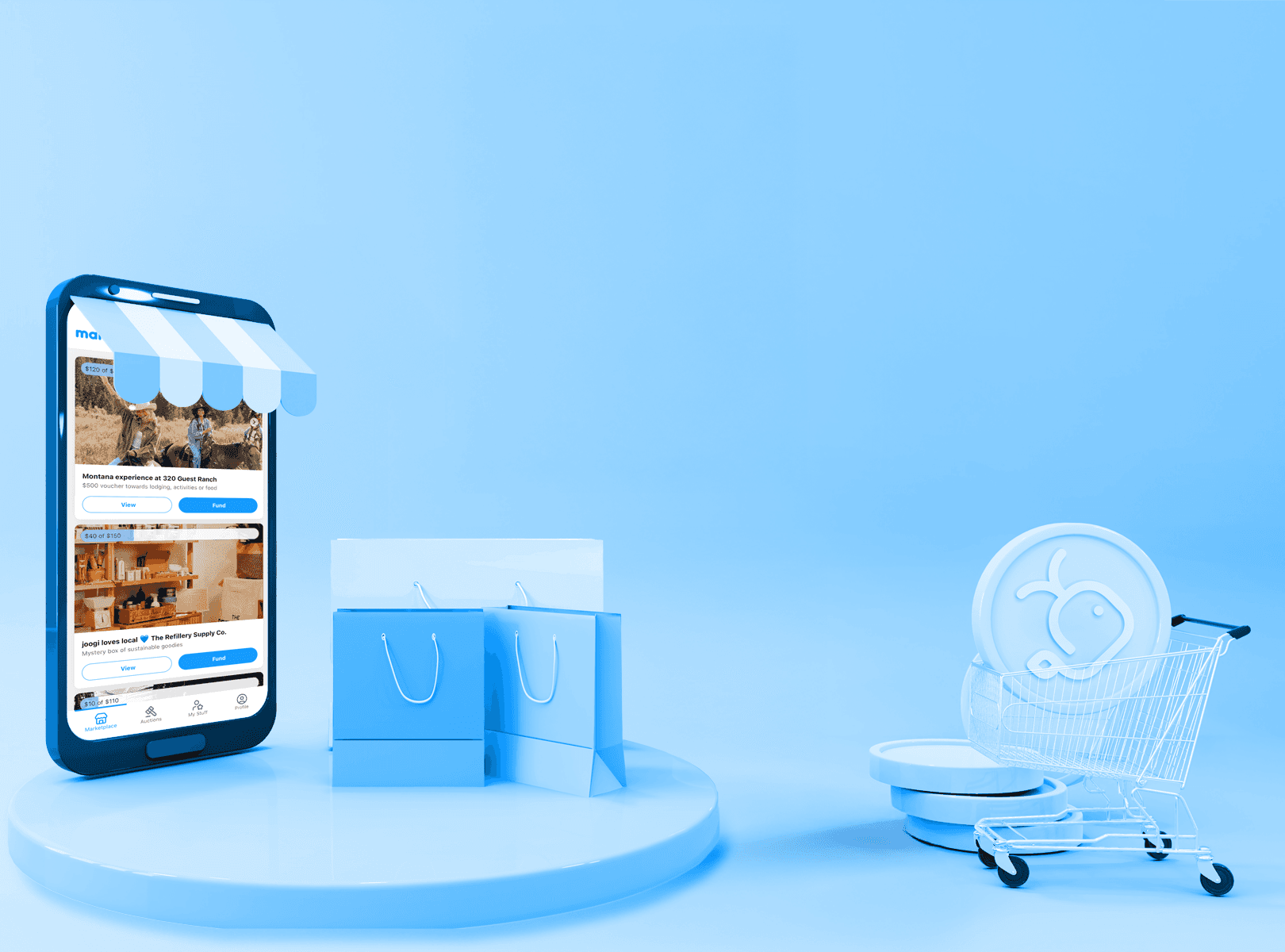 Help fund any item in the marketplace. Your contribution unlocks the auction for you to bid on the item to win it.